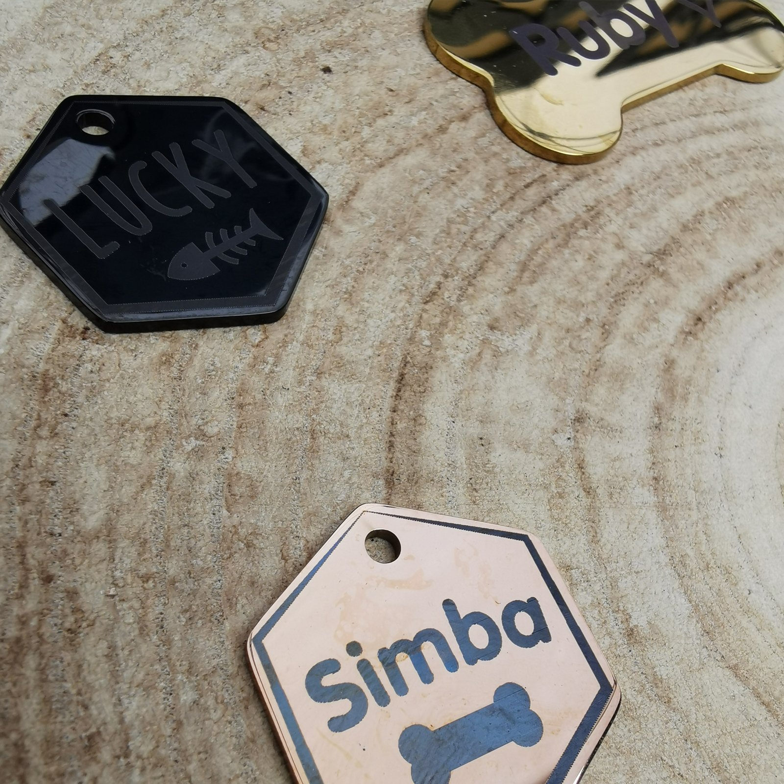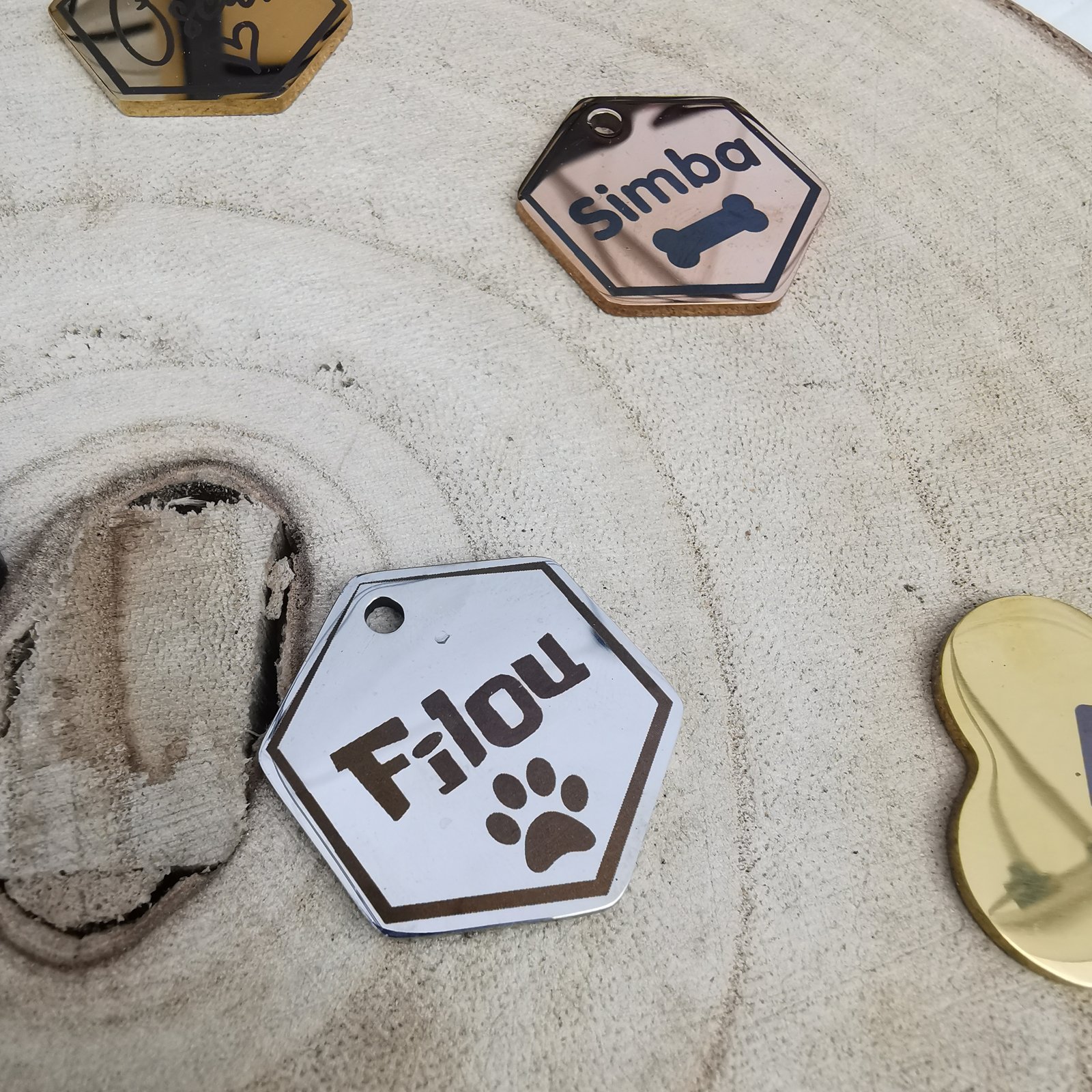 Offrez à votre animal de compagnie une médaille entièrement personnalisée ! Nos médaillons pour animaux sont à la fois très jolis sur nos petites bêtes préférées, mais aussi particulièrement utiles : sur la face avant du médaillon figure le prénom de l’animal, tandis qu’au dos du médaillon figure(nt) votre/vos numéro(s) de téléphone(s) pour que l’on puisse facilement vous contacter, si votre animal est perdu.