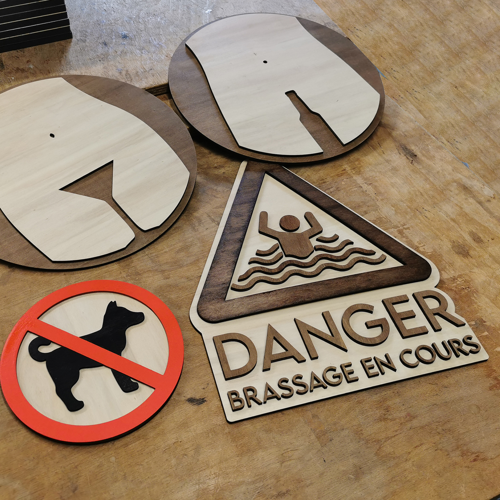 Nous pouvons vous accompagner dans la réalisation de vos panneaux d'affichage sur-mesures, et signalétiques diverses en bois.